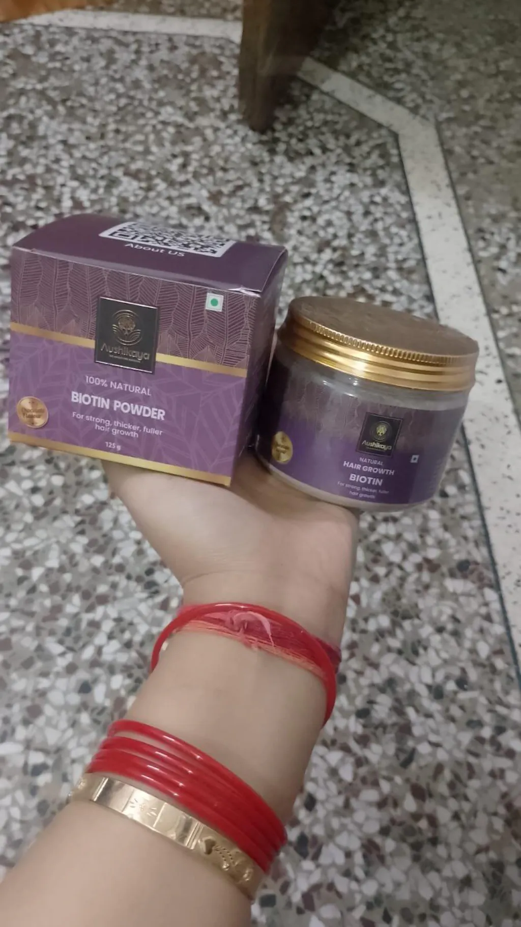 Item Weight 160 Grams Item Form Powder Active Ingredients Biotin Poweder (Vitamin B7), Selenium, Zinc Age Range (Description) All - Promotes Healthy Hair Growth Natural biotin blend enriched with Amla, Bhringraj & Ashwagandha helps nourish hair roots, reduce hair fall and support thicker, stronger hair.