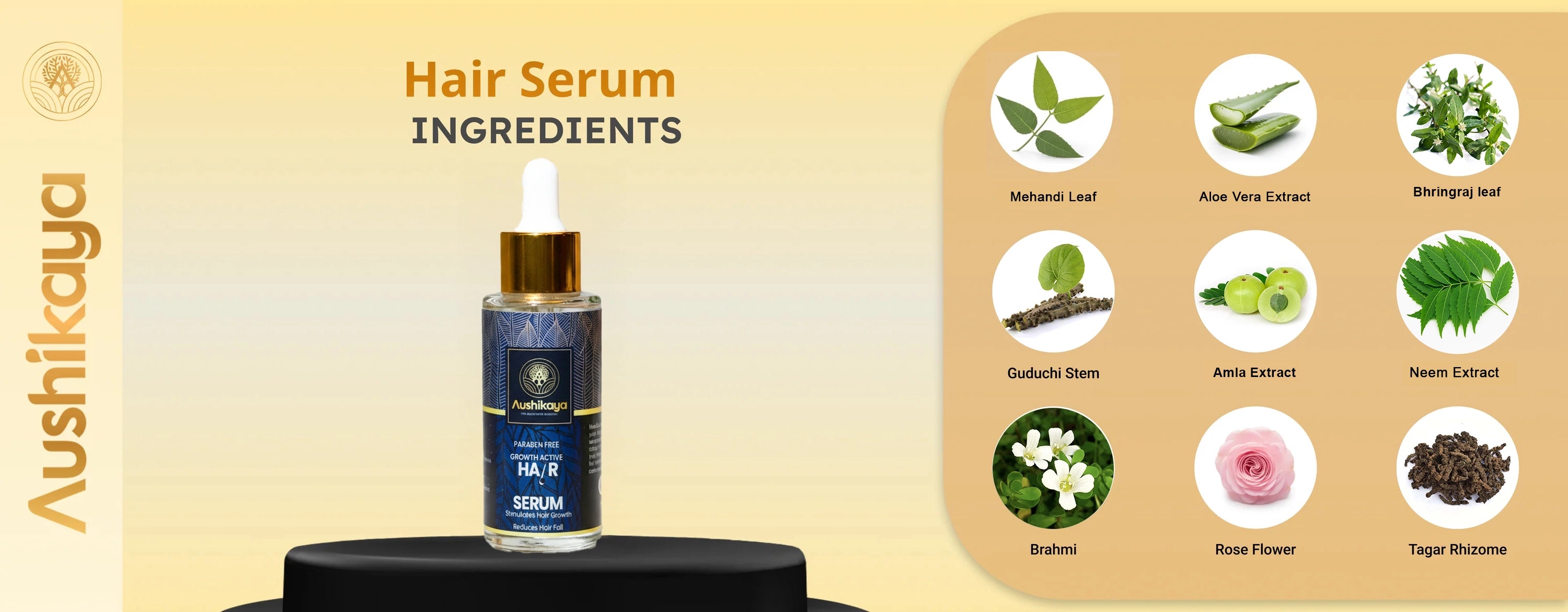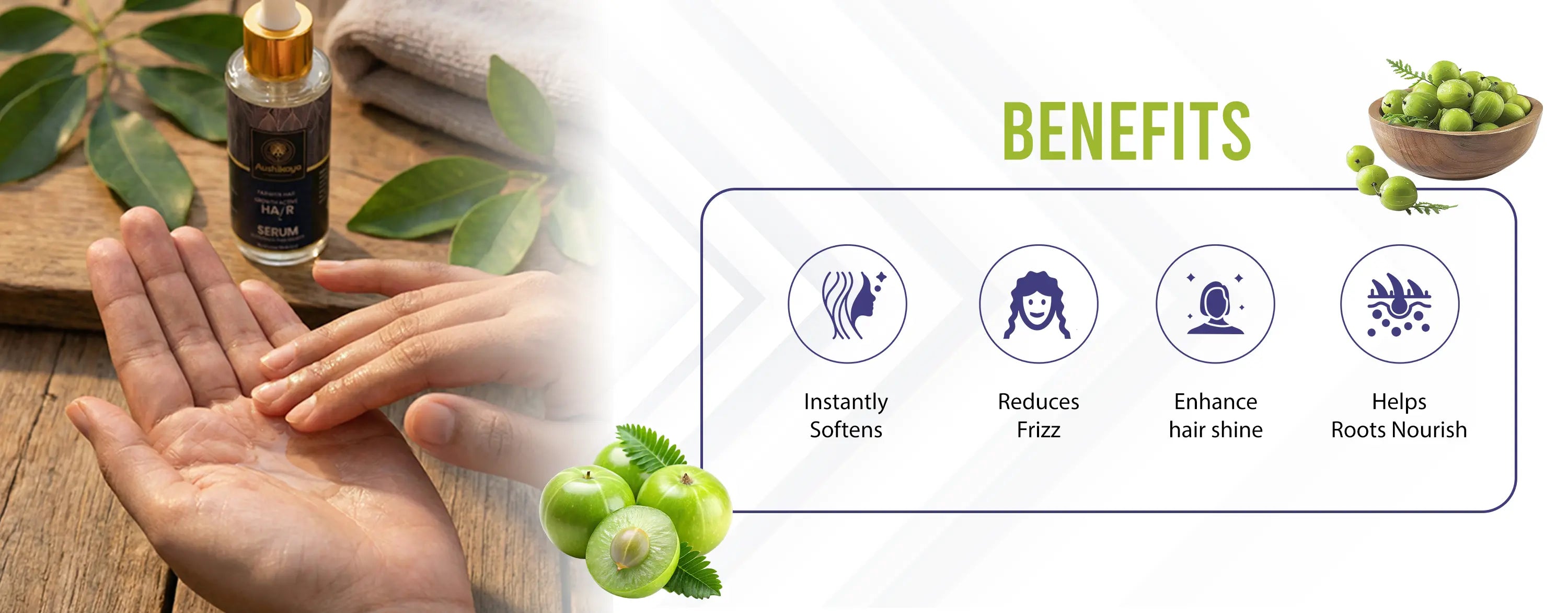 Ayurvedic scalp-nourishing hair growth serum enriched with herbal goodness, strengthens roots, stimulates natural growth, restores balance, adds vitality, and leaves hair strong, shiny, and beautifully healthy.